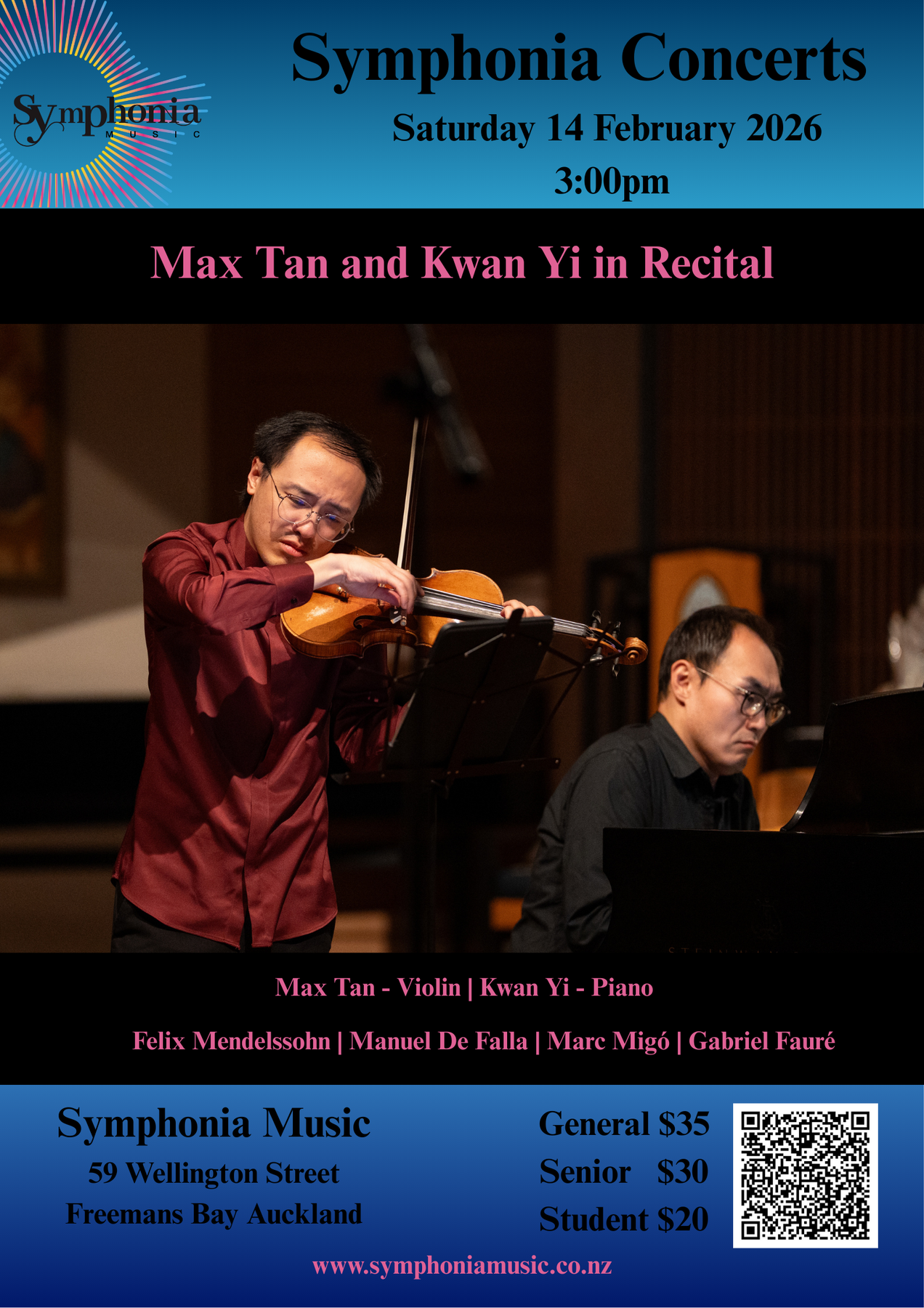 A highlight of the tour is Daniel’s participation in the Auckland Arts Festival 2026 on the 21/02 at the UXBRIDGE Arts & Culture Howick and 22/02 at the Selwyn Village Theatre Point Chevalier where he performs with the Aotea Youth Symphony in celebration of the orchestra’s 40th anniversary. These concerts form part of his international Bridge Between Cultures project — connecting classical, cinematic and contemporary influences through cross-cultural collaboration.