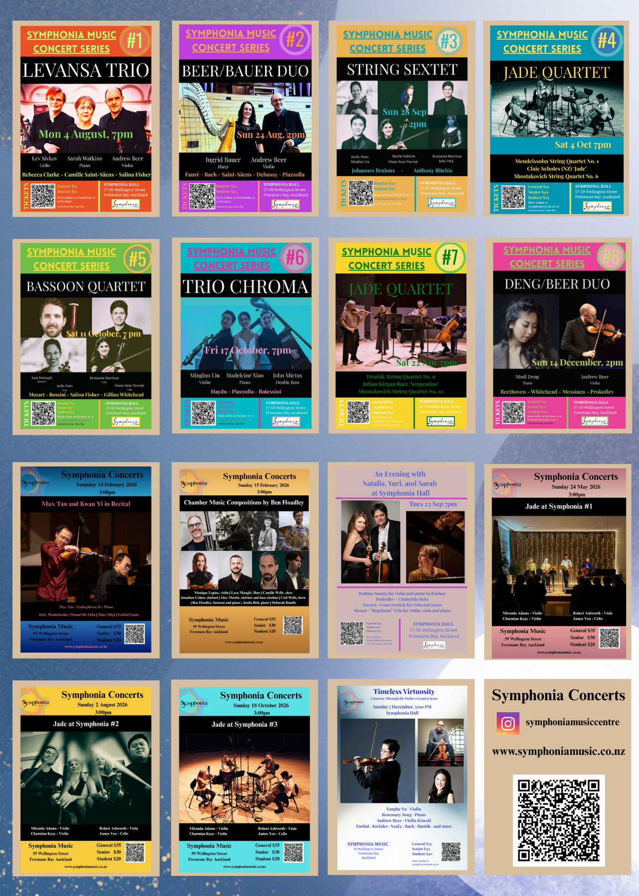The 2026 tour of Verstappen spans both the North and South Islands and includes performances at major festivals and venues such as the Hamilton Arts Festival, Cambridge Town Hall, Wellington collaborations with film composer Stephen Gallagher, a residency and recording at Sublime Studio in Otago, collaborations with youth orchestras, and concerts in Queenstown, Invercargill and Christchurch.